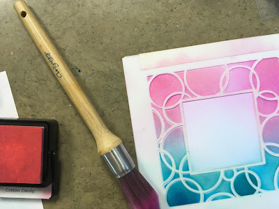 10. Hi Barbara, that stencil is just perfect for the Olympics. I've got the wee men and their balls!!!! Balls are very useful, for backgrounds and borders. I love this colour combo too, never thought to add a pale green over blue to make teal, so I've learned something good. Thank you. Please don't be giving Daisy any ideas about eating ink pads, it's bad enough that she wants to paw paint with them!!!!