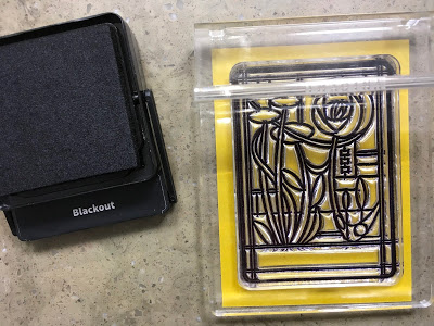 Stamp the stamp onto a half-piece using the Radiance Blackout.