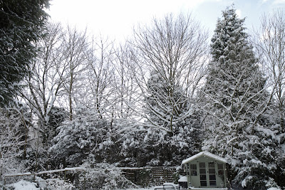 Your garden looks so pretty, you've had a lot of snow haven't you. The owl is beautiful, what a lovely present. You have such lovely people working for you don't you, I bet there was a lot of chatter and tales of nightmare journeys when they arrived. Keep warm and snug.