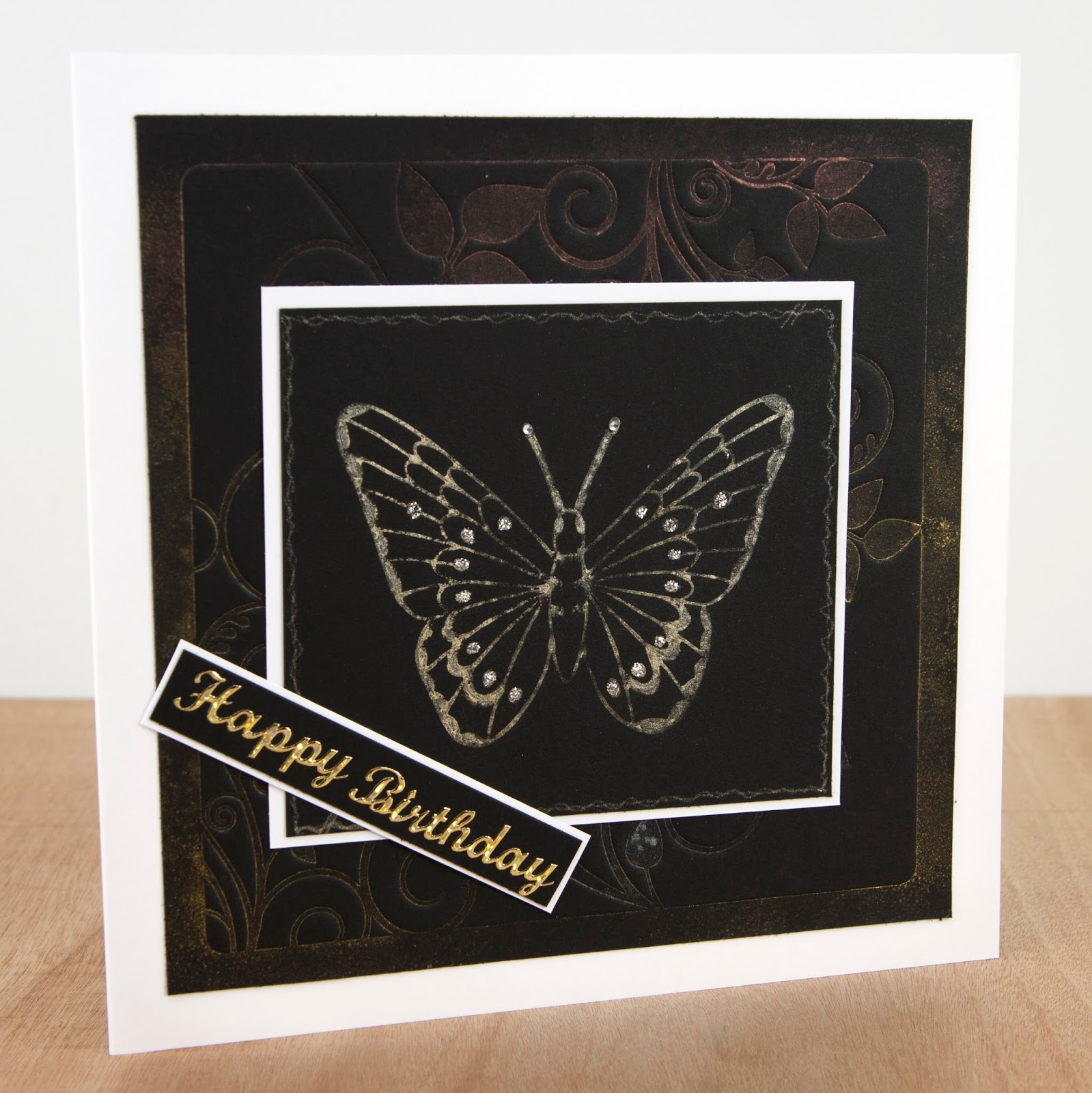 Trim back the stencil piece and mount onto a card blank, add your butterfly topper and a greeting of your choice.