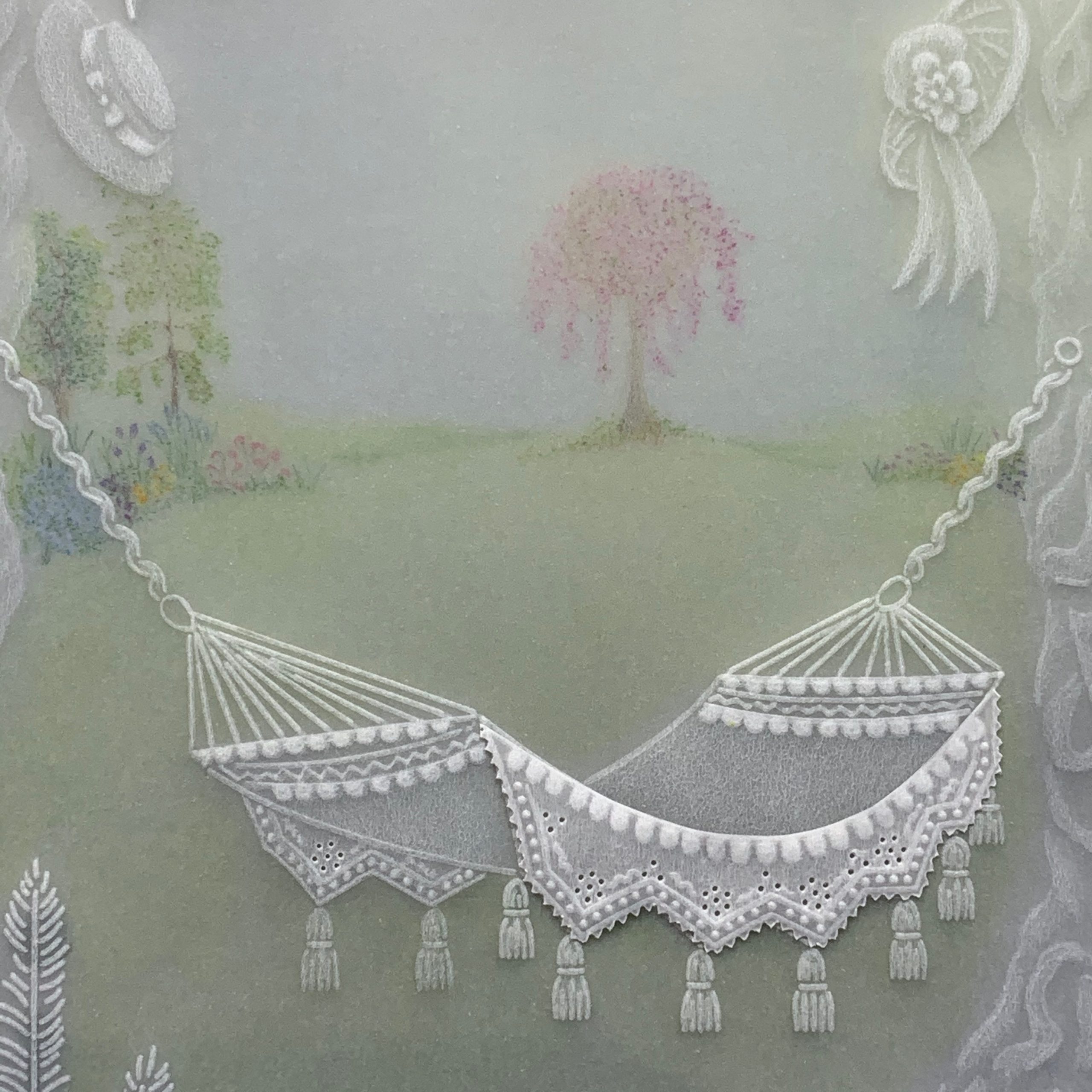 Lynne Jackson did a lovely art sample which perfectly shows off the hammock. Here are a few photos from various angles, to show how she did it…