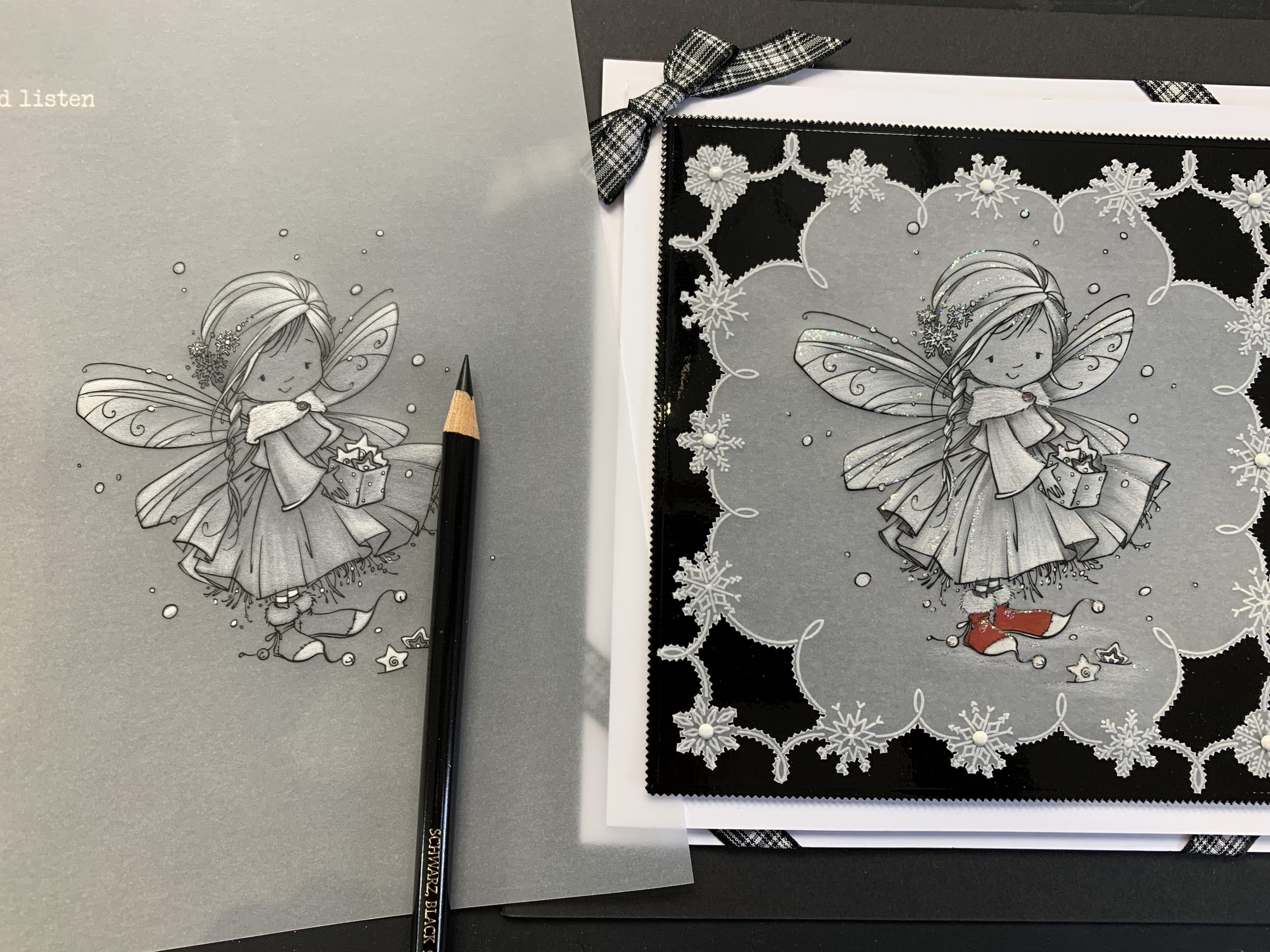 You will be blown away by what you can do with these images printed on parchment! The colour ones are superb, and the black prints are right up my street. Linda sent me a sample which I promptly fell in love with. In fact, she’s the reason I got so far behind today!! No no no. Not Linda. The little poppet! I got so immersed in the prep shading – it was wonderful. Want to see? Hang on. Let me find a picture….