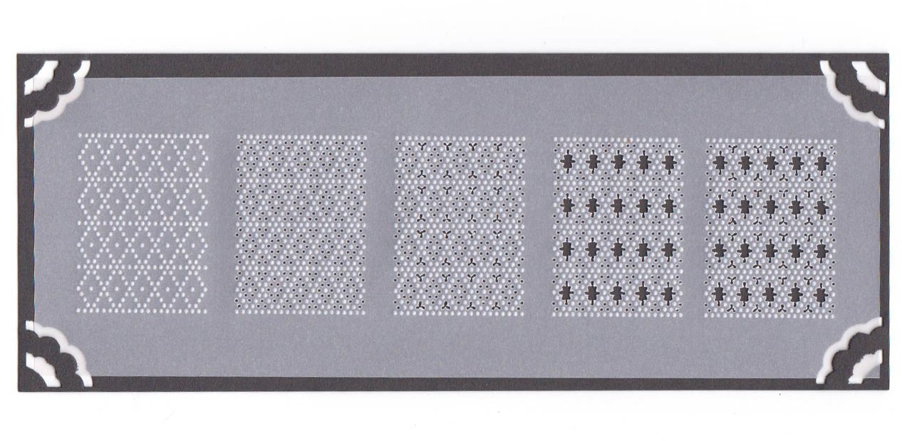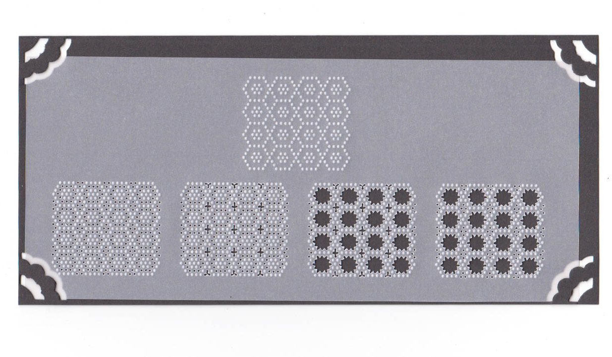 Once again, Josie worked her magic with the new Embossed Pattern Sampler Plates and she created these sample pieces to show what you can do if you choose to introduce the basic grids to add perforations and also some picot cutting