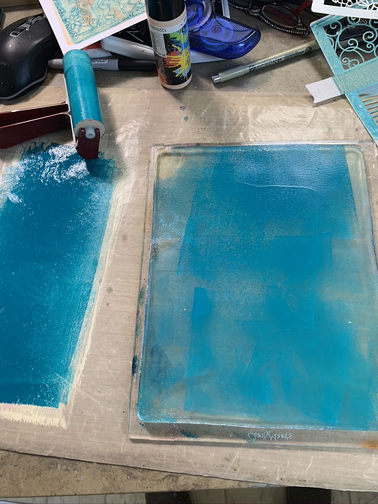 So I made a card for Dad when I got in from work today. 85 years ago, just before the war, he was born in London. Willesden. Northwest. So I decided to make a London Card. Simple, but personal. I’ve got a load of Gelpress prints that I pulled using our Decorative panel stencils a while ago.
