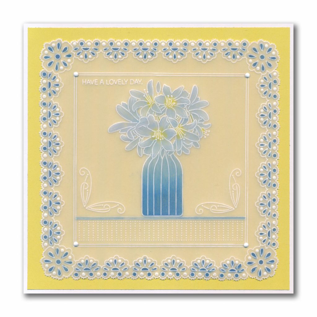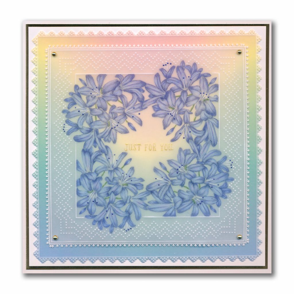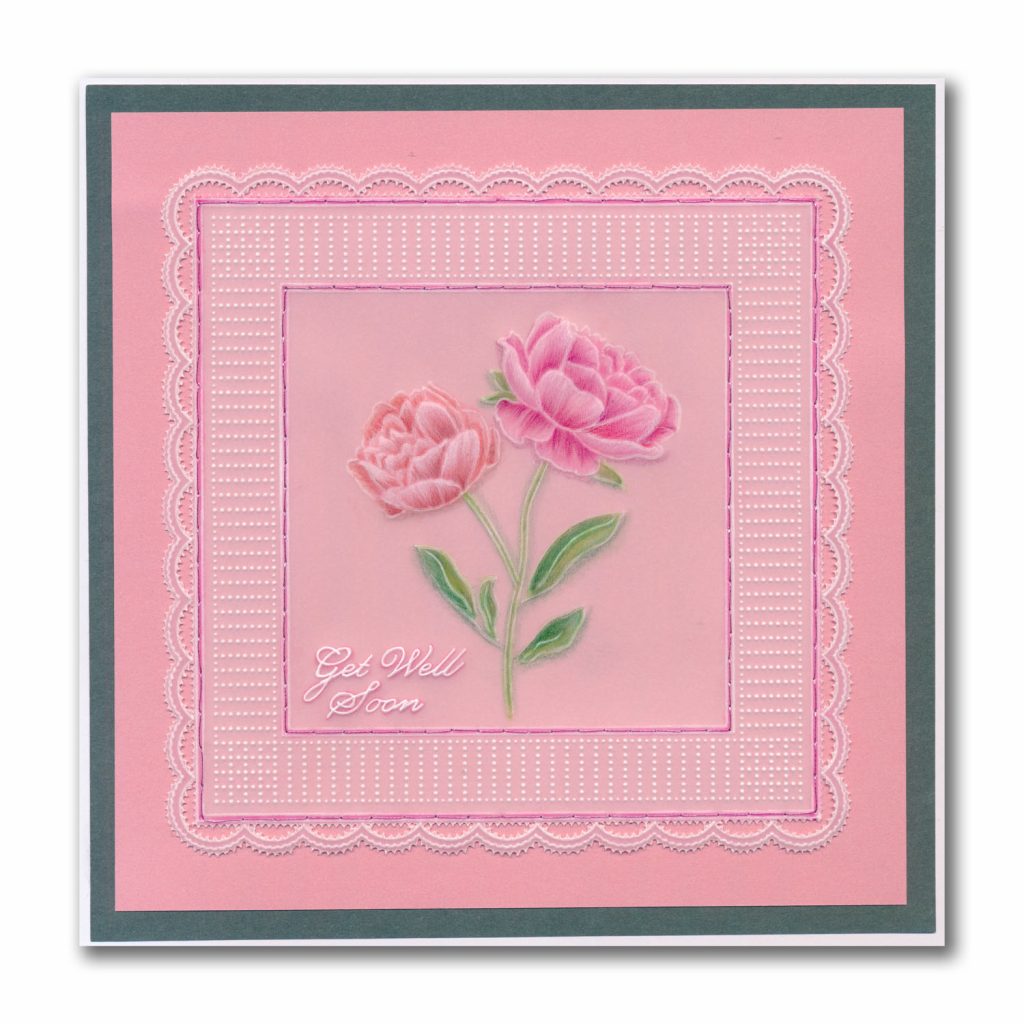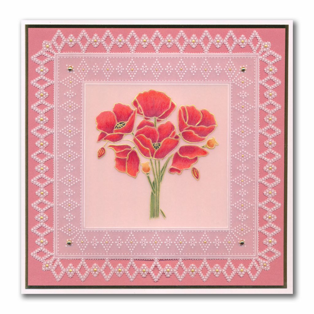 This FLORAL COLLECTION began a few years back, with the Frosted Floral Collection – a clever colouring concept by Linda. Instead of Groovi plates, these tutorial packs comprise flower designs printed in both black AND white on parchment, complete with step by step how-to instructions on trad colouring. Perfect for honing your colouring and white work skills.